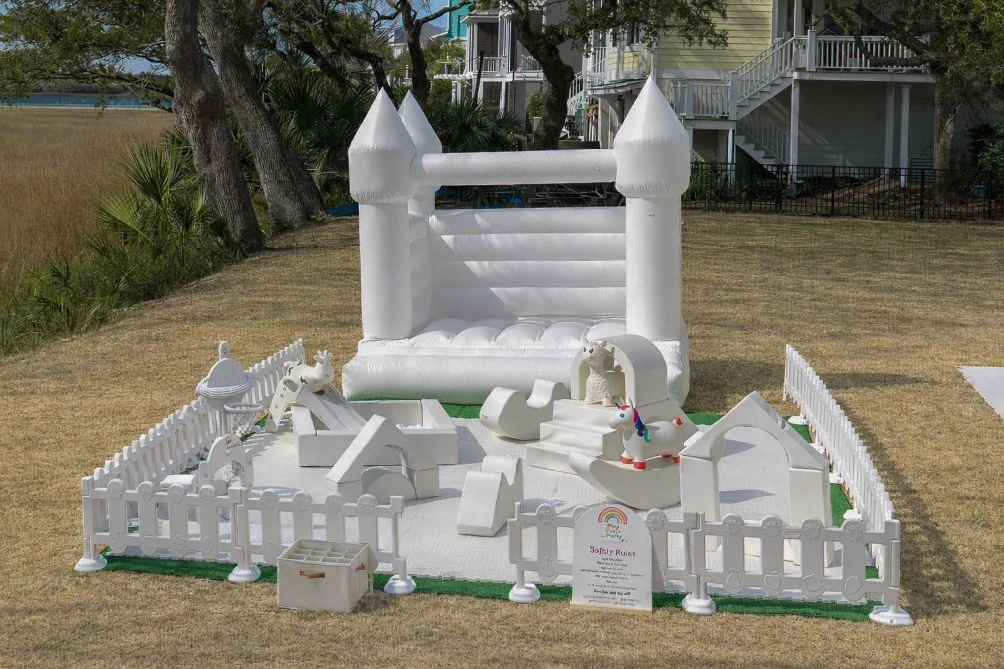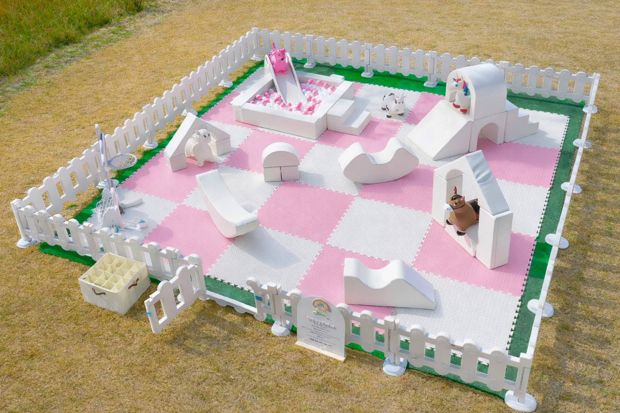 Optional Add-Ons: Customize your setup with color-matched mats and balls, mix-and-match soft-play sets, cozy play cubes, ball pits and slides, bounce house, themed signage, and balloon garlands. Balloon garlands are available through one of our preferred vendor partners, and we can coordinate the arrangements on your behalf. Please fill out our Inquire Now form to learn more about pricing and availability for add-ons!